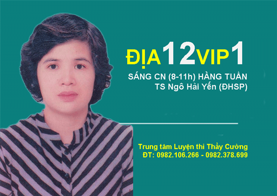 Địa12: Địa12VIP1 học Sáng CN hàng tuần, từ 8-11h - TS Ngô Hải Yến SP